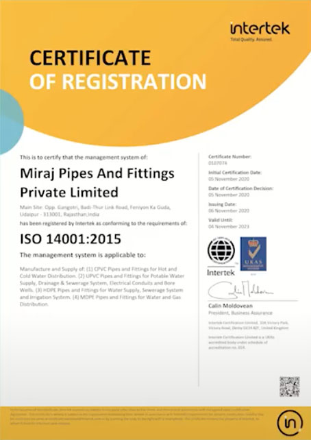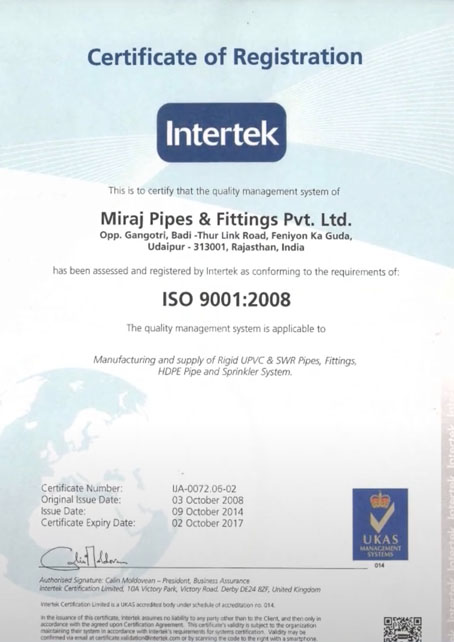 Our advanced 6 lac sq. ft. infrastructure, equipped with cutting-edge machinery, excels in fulfilling orders of all sizes. The in-house R&D facility ensures products meet ISI standards, and with 28 dedicated machines, our production capacity reaches 55640 MT. ISO 9001 certification underscores our commitment to quality across a diverse product range, including RIGID PVC pipes, SWR pipes, Elastomeric pipes, CPVC & UPVC plumbing solutions, HDPE pipes, Sprinkler pipes, and more. Recent additions, the "MIRAJ Rainwater Harvesting System" and "Miraj Green House Tunnel," enhance our portfolio for applications in agriculture, housing, industries, and beyond.